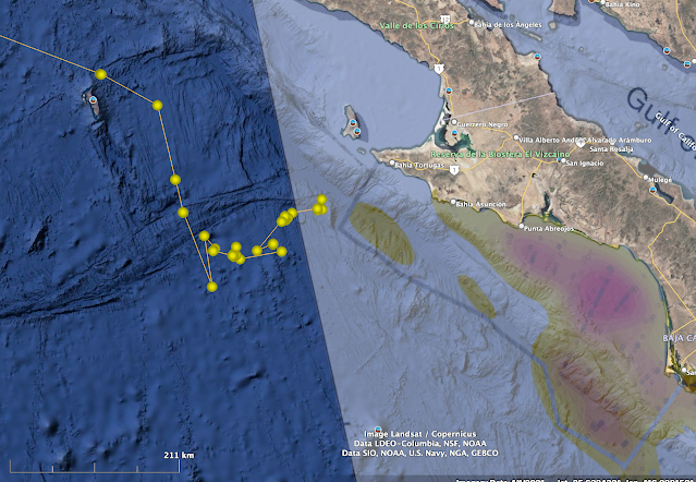 What is very very exciting is that the bulk of turtles heading towards the peninsula may well enter the Gulf of Ulloa, the edge of which Mei has already begun exploring... I wonder why it hasn't yet ventured into the Gulf properly."